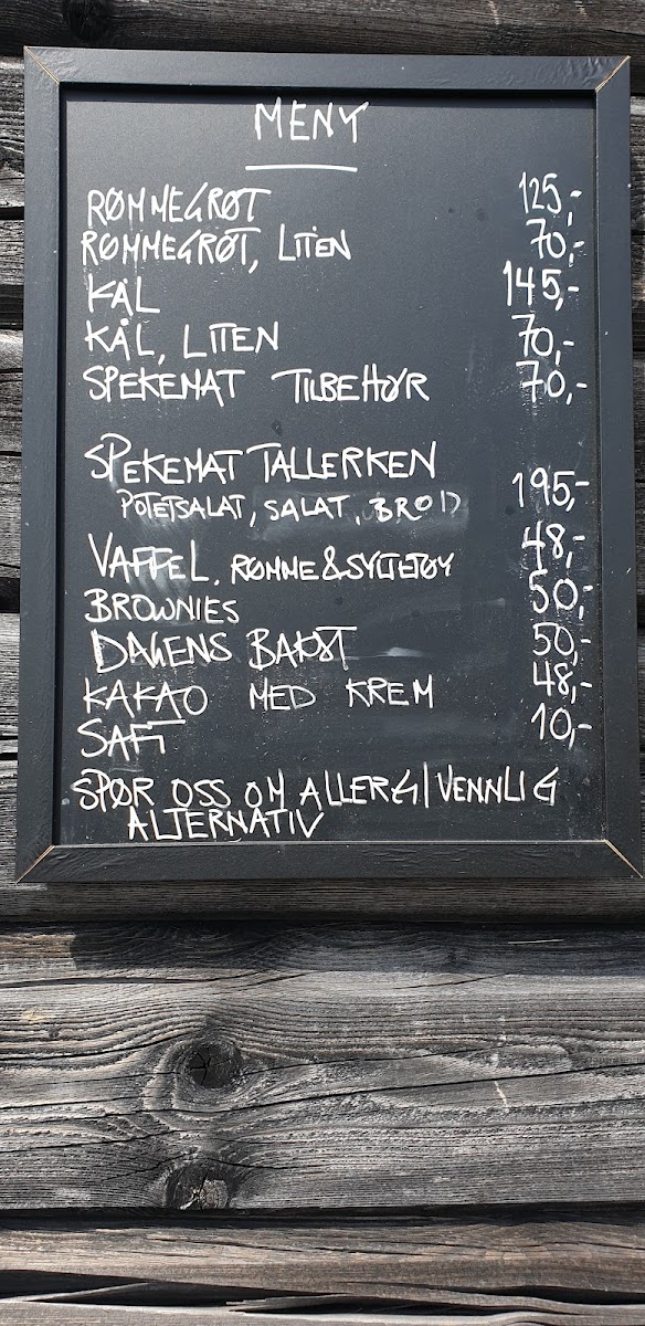 The menu features a selection of classic seterkost, including warm, comforting dishes like rømmegrøt and spekemat, often recommended by our satisfied guests. Pair these with freshly brewed coffee or rich hot cocoa for the ultimate treat.